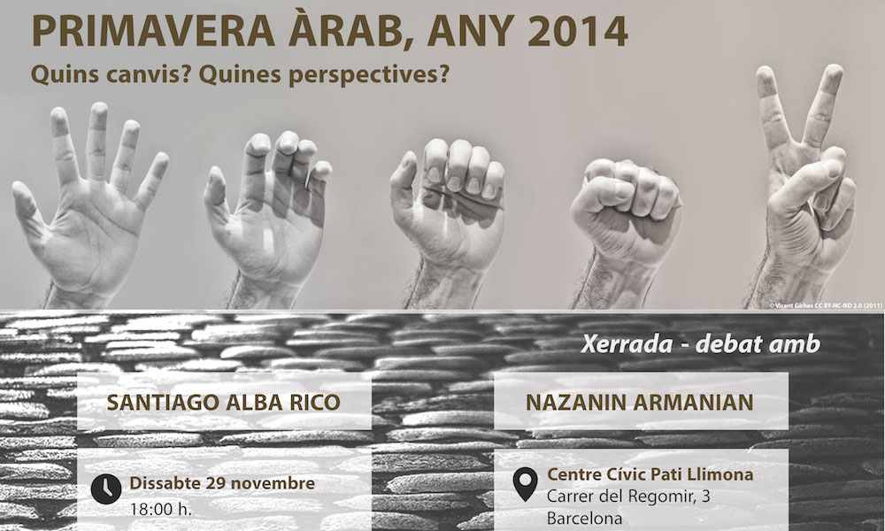 Les revoltes àrabs iniciades l’any 2010 van suposar un impuls transformador i revolucionari sense precedents als països del nord d’Àfrica i de l’Orient Mitjà. Una àrea molt propera i alhora molt desconeguda que va sorprendre el món per la intensitat, la transcendència i l’extensió d’aquests esdeveniments. Des de la Fundació Solidària Flama hem convidat Santiago […]