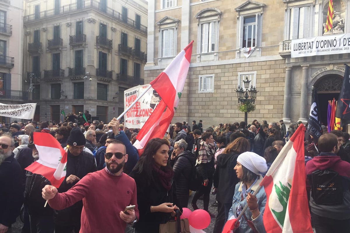Concentració de solidaritat amb la revolta del poble libanès. Barcelona, novembre de 2019.