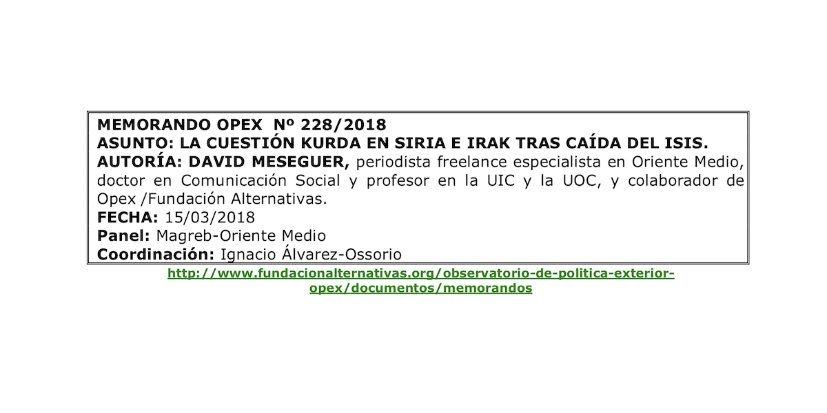 La cuestión kurda en Siria e Irak tras caída de ISIS