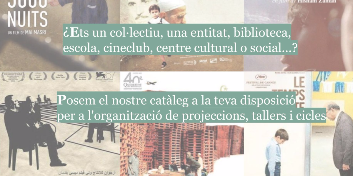 Catàleg de la Mostra de Cinema Àrab i Mediterrani de Catalunya a disposició d’escoles, col·lectius, entitats, biblioteques, centres culturals i socials entre altres per a l’organització d’esdeveniments. Accedir