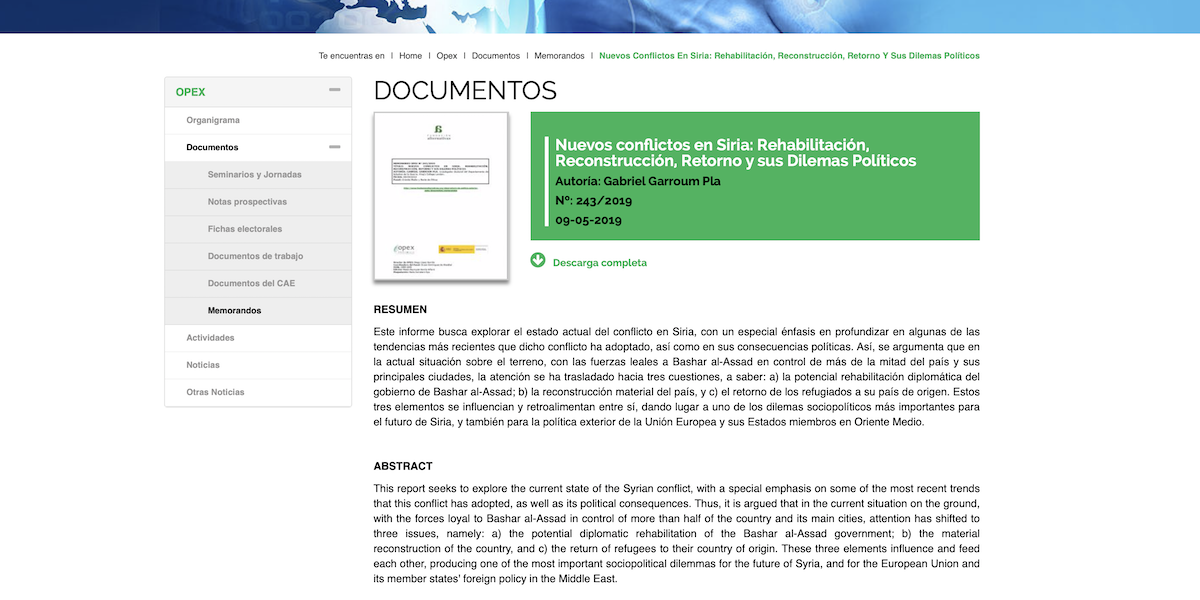 Resumen Este informe busca explorar el estado actual del conflicto en Siria, con un especial énfasis en profundizar en algunas de las tendencias más recientes que dicho conflicto ha adoptado, así como en sus consecuencias políticas. Así, se argumenta que en la actual situación sobre el terreno, con las fuerzas leales a Bashar al-Assad en […]