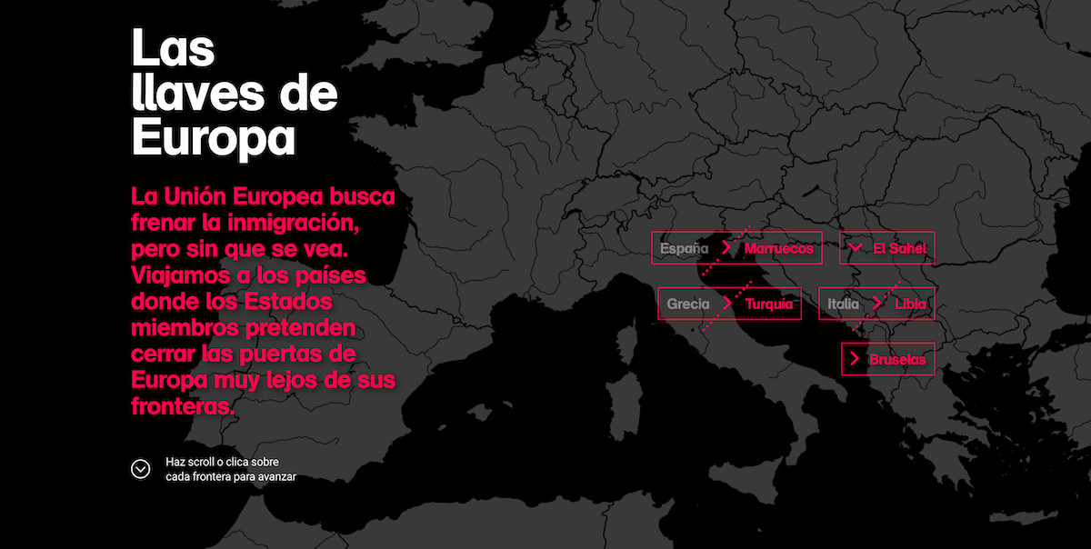 El diario.es [octubre 2019] La Unión Europea busca frenar la inmigración, pero sin que se vea. Viajamos a los países donde los Estados miembros pretenden cerrar las puertas de Europa muy lejos de sus fronteras. Visualitzar