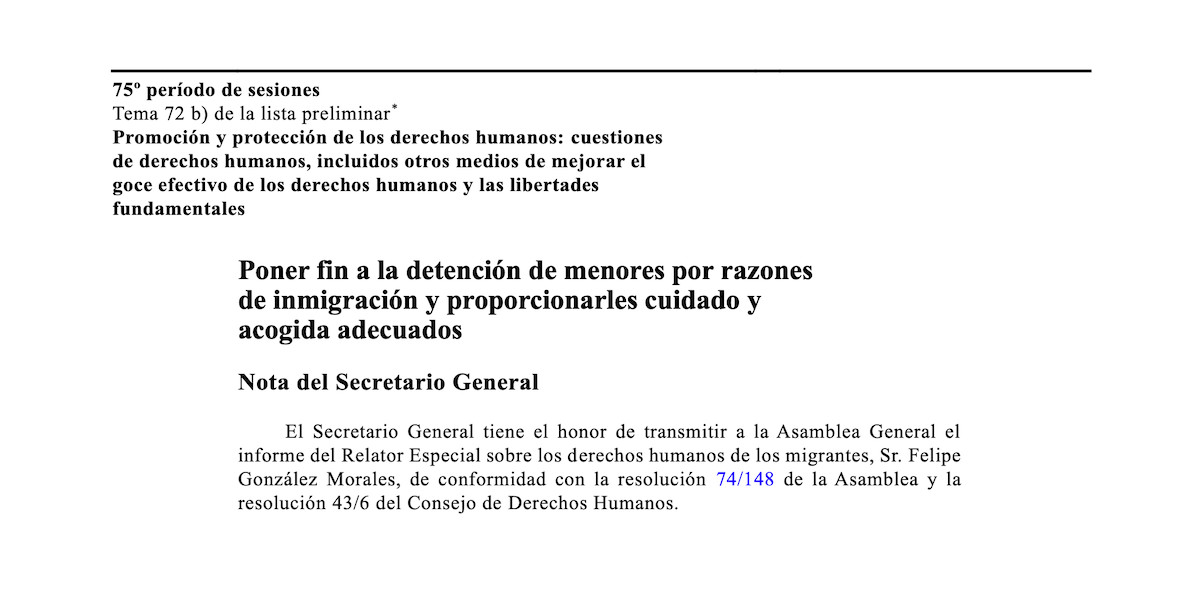 Sr. Felipe González Morales [setembre 2020] En el informe, el Relator Especial examina el marco jurídico internacional que protege los derechos humanos de los niños migrantes y examina el impacto de la detención de menores por razones de migración y las soluciones alternativas de cuidado y acogida existentes. Sobre la base de la información y […]
